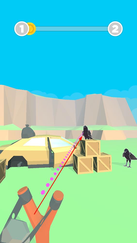1、第一人称瞄准射击:以第一人称视角操作弹弓,瞄准出现的乌鸦进行射击,通过调整角度与力度确保命中,近距离感受射击的真实感与精准度的重要性。