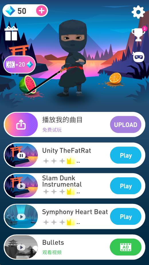 1、武士主题融入:将切水果与武士元素结合,解锁的刀具带有不同刀光特效,角色还能习得“拔刀斩”等技能,赋予传统玩法新的趣味设定。