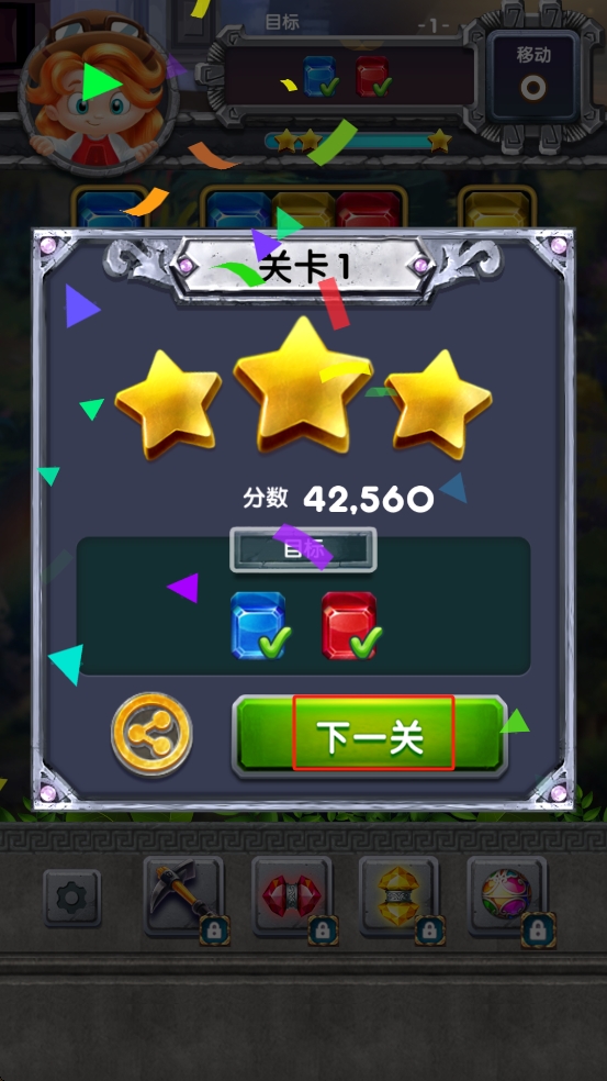 2、关卡目标分层:每关设置主副目标,主目标为消除指定宝石数量,副目标可能是收集隐藏道具,完成双目标可获得额外奖励,提升挑战动力。