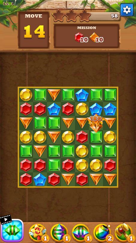 3、由于步数或时间有限,需合理规划消除顺序,在限定条件内完成宝石粉碎或收集任务,通关解锁新关卡。