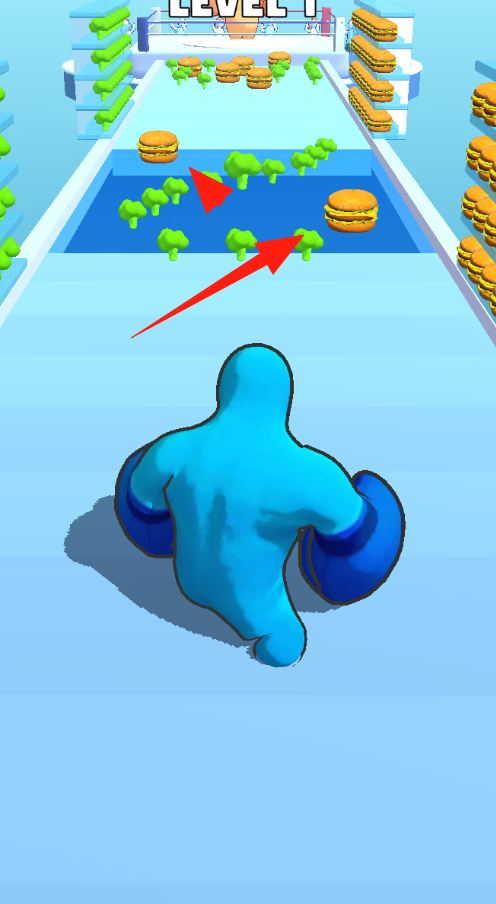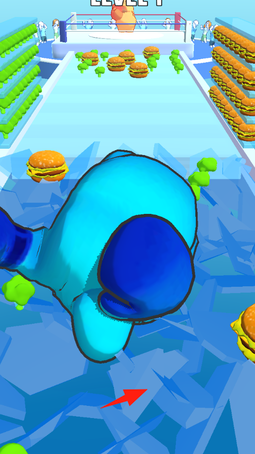 1、控制角色去吃那些汉堡包使自己变大。