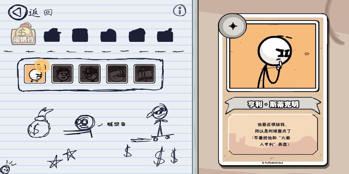1、角色经典:采用经典火柴人形象,玩家可控制其进行冒险闯关,经典形象搭配新颖玩法,让玩家在熟悉中感受新奇体验,增强代入感。