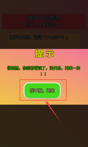 3、回答错误后,点击红框我不服按钮重新挑战。