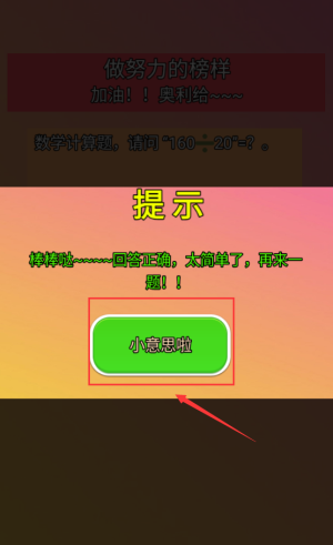 4、答对后,点击红框小意思啦继续答题。