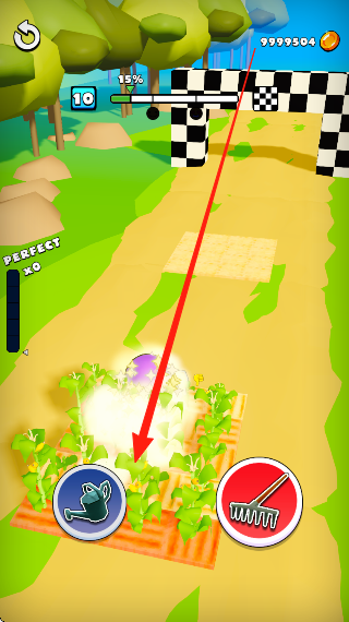 2、在过程中选择跑酷的操作,按农田需求完成浇水等农事,避开途中障碍,保持前进节奏。
