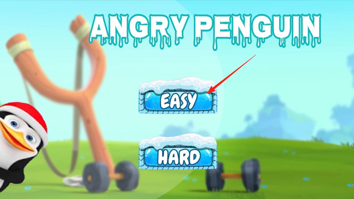 1、点击EASY选择简单难度,进入游戏体验轻松的弹射挑战,利用弹弓发射企鹅,开启基础关卡。