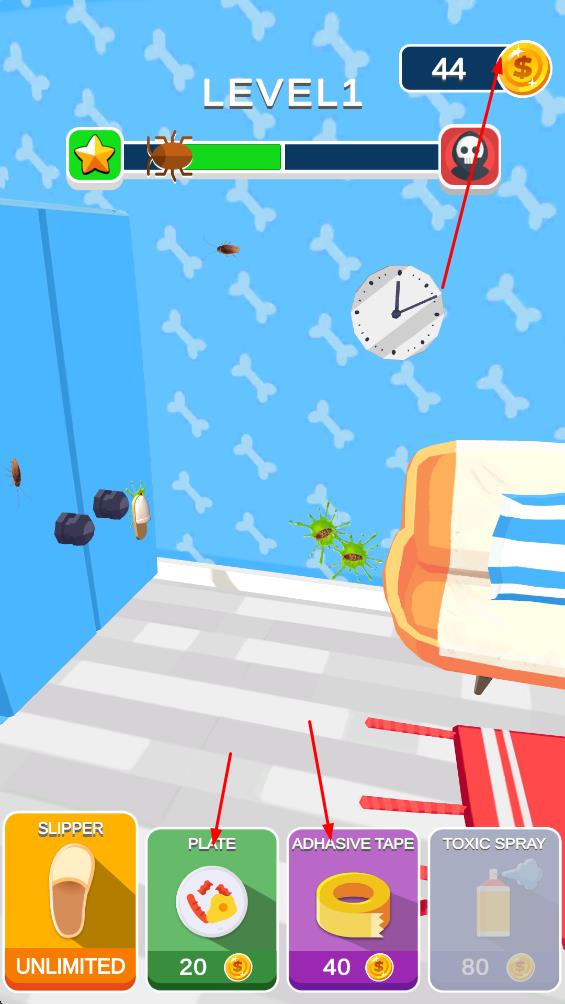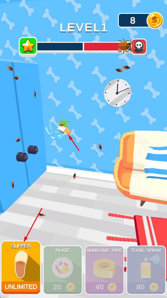1、点击击杀入侵蟑螂:观察屏幕中出现的蟑螂,通过点击操作将其消灭,注意它们的狡猾动向,及时反应并精准点击,确保尽可能多地击杀,积累更高分数。
