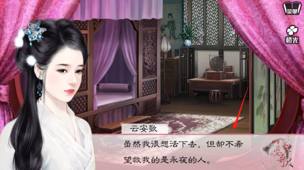 2、阅读云安歌台词,推进剧情,了解角色对被永夜的人救助的态度,触发后续情节,体验角色情感驱动的故事发展。