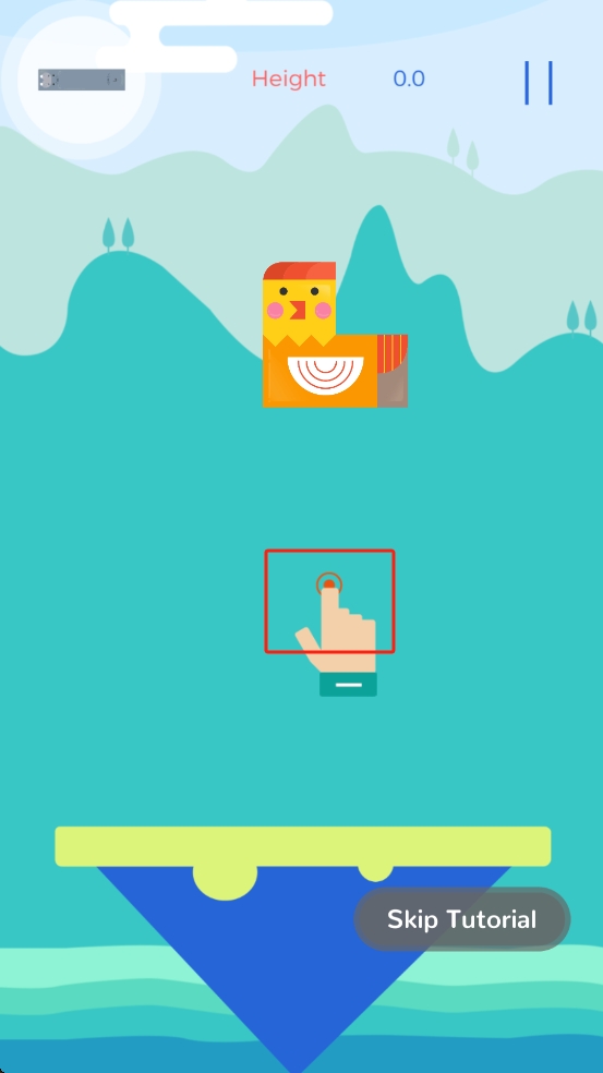 1、开局我们依据手指提示点击屏幕,操控方块为后续方块落下、堆叠做准备,开启动物岛方块挑战。