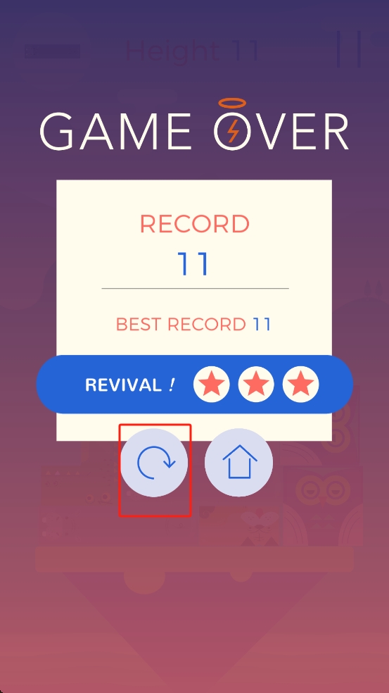 3、游戏结束后若想重玩动物岛方块堆叠关卡,可以点击左侧重置按钮,重新尝试,争取突破高度记录。