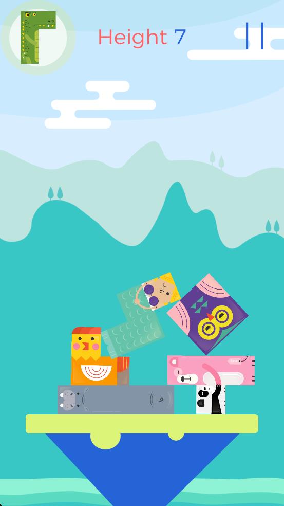 2、堆叠核心玩法:以动物方块的堆叠为核心,通过调整位置追求平稳,规则简单却考验预判力,不同动物方块的形状差异增加了挑战多样性。
