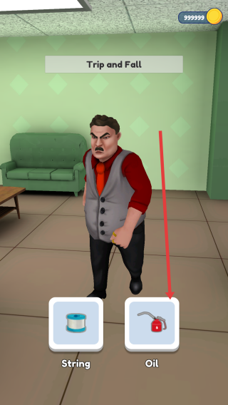 1、在Trip and Fall的关卡,选择左边的线或汽油道具,放置地面,诱导角色触发,完成绊倒整蛊。
