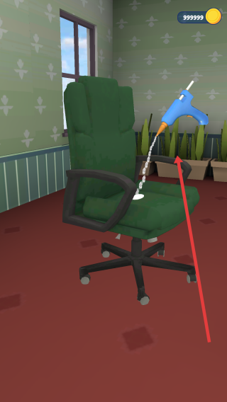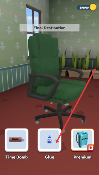 2、进入Final Destination场景,根据目标选道具,若用Glue,点击椅子,将胶水涂抹其上,准备整蛊。