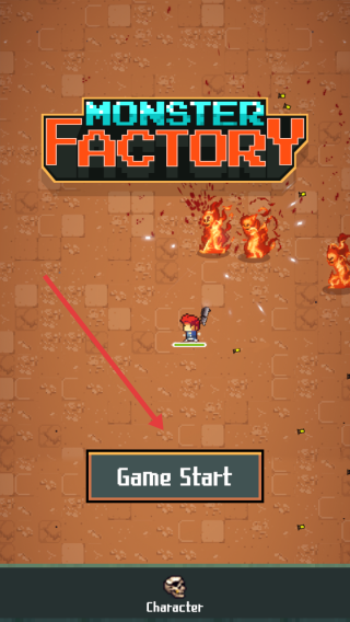 1、点击Game Start按钮,进入像素地牢关卡,操控持武器角色,准备迎战火焰怪物等敌人开启冒险。