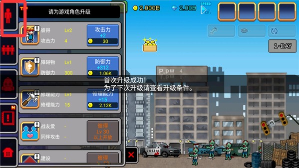 3、点击左上角的单人按钮,当金币足够的时候,升级角色的攻击力、障碍物、修理能力等等。