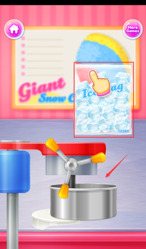 3、按照红框箭头提示,操作冰袋倒入机器。