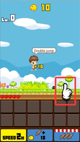 1、通过点击屏幕操控角色跳跃,躲避敌人攻击与障碍物,保持灵活走位,确保角色在战斗中的生存能力。