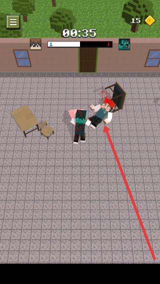 2、前方遇敌人时,操控角色靠近敌人进行战斗,借助场景里桌椅等阻碍敌人,击败敌人后继续探索。