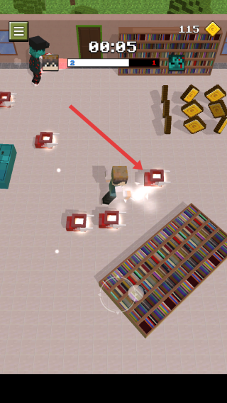 3、在图书馆的场景,需要快速移动拾取金币,利用书架的掩护灵活躲避敌人,及时击败阻拦敌人。