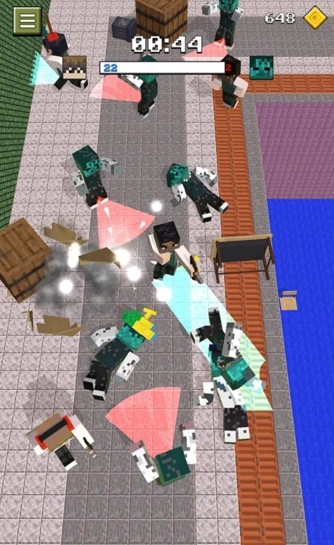 3、像素动作流畅带感:虽采用方块画风,但动作设计流畅,僵尸的扑咬、人类的闪避与武器挥舞都极具冲击力,搭配方块碰撞音效,游玩让生存的对抗更具有沉浸感。