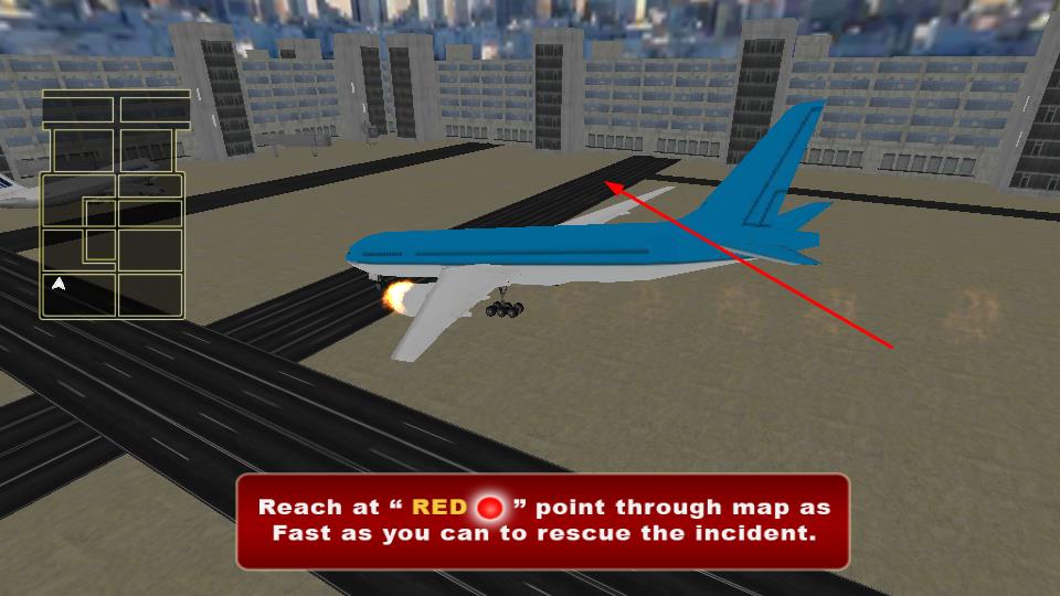 2、依据地图指引,迅速赶往标有红点的事发地,应对飞机起火等突发事故,争分夺秒开展救援。