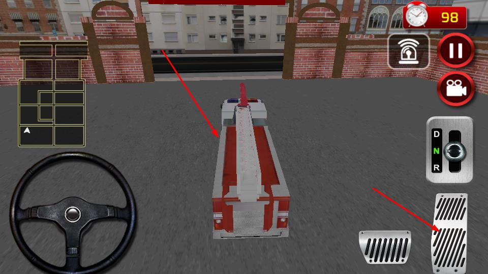 3、通过方向盘、挡位与踏板操控消防车,灵活行驶穿越城市,精准抵达现场完成灭火等救援行动。