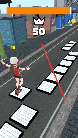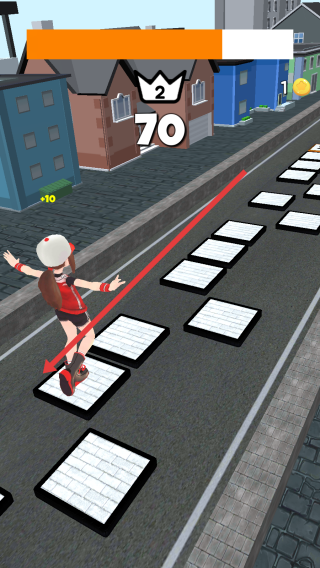 1、进入游玩,角色在街道格子上,按顺序跳跃白色方块,点击屏幕左右来换方向跳方块,留意路边道具。