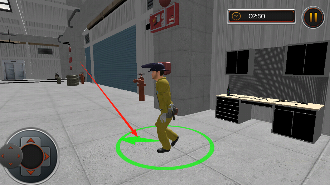 2、通过虚拟摇杆操控角色在车间场景移动,探索空间定位高架巴士的位置为后续维修行动铺路,感受场景探索的交互逻辑。