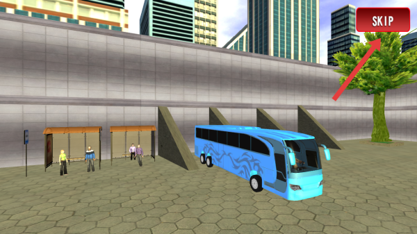 1、进入游戏,可以选择点击界面右上角SKIP的按钮,跳过开场动画,快速进入巴士驾驶环节。