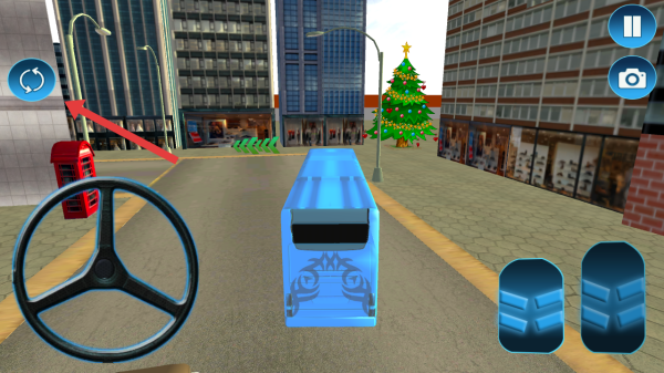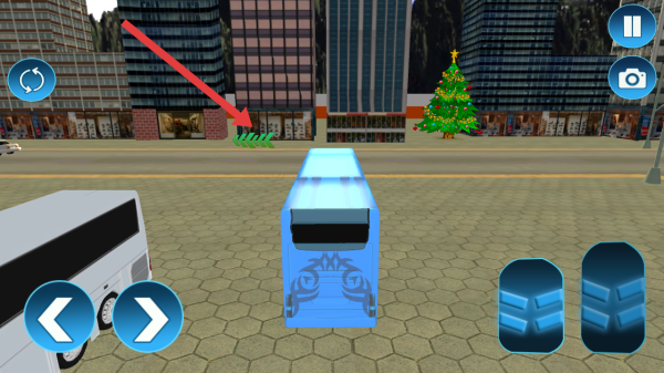 2、需要操控蓝色的巴士,沿着箭头指向的绿色系统指引方向行驶,遵循路线到目的地接客。
