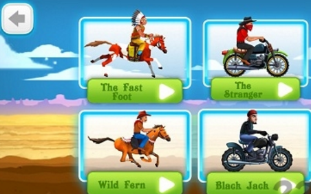 狂野西部种族是一款以狂野西部为背景的赛车竞速游戏,融合了赛车与跑酷元素,带来别样精彩的体验,玩家可从四个角色中选择,搭配四种特色“车辆”牛仔的马匹、摩托车、杰克的钢马、印第安人的摩托车,自由设计角色与坐骑属性,惊险的西部赛道环境中,既有刺激的竞速挑战,又穿插着搞笑元素,操作简单易上手。