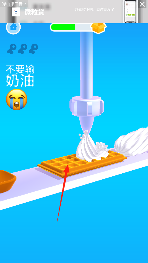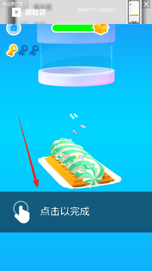 3、点击屏幕确认雪糕装饰成果,提交制作好的雪糕以点击交互收尾,达成关卡目标。