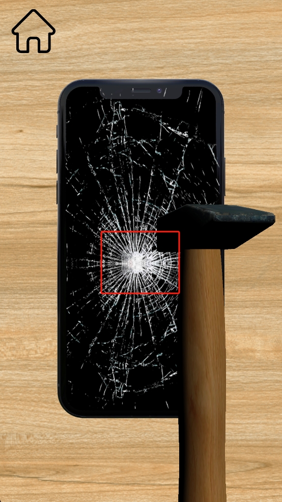 2、握住屏幕上显示的锤子图标,将其对准手机屏幕红色方框内的碎裂中心点,用力敲击该位置,让碎裂区域扩大以推进任务。