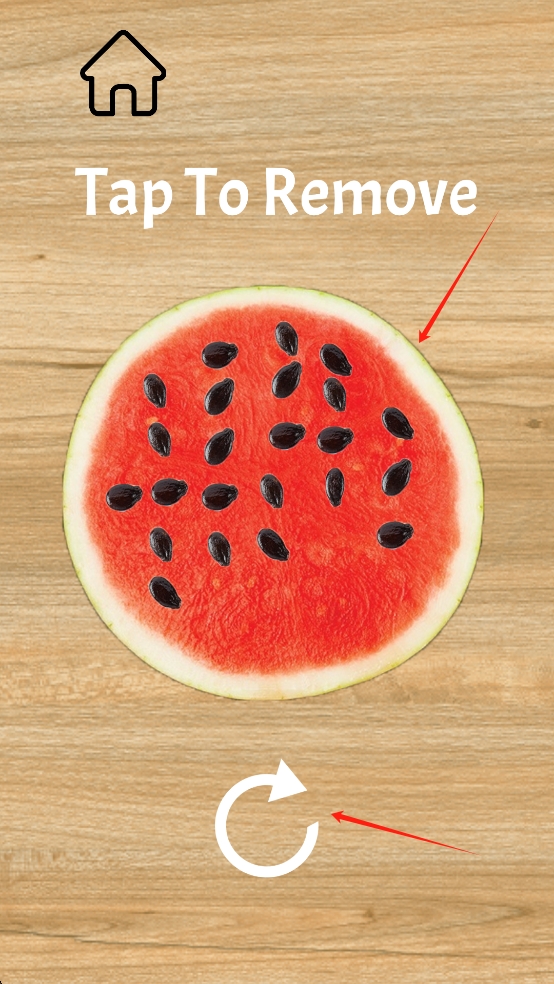 3、根据画面中的文字提示,找到带有深色纹路的西瓜区域,连续点击西瓜的表面,逐步将西瓜籽移除。