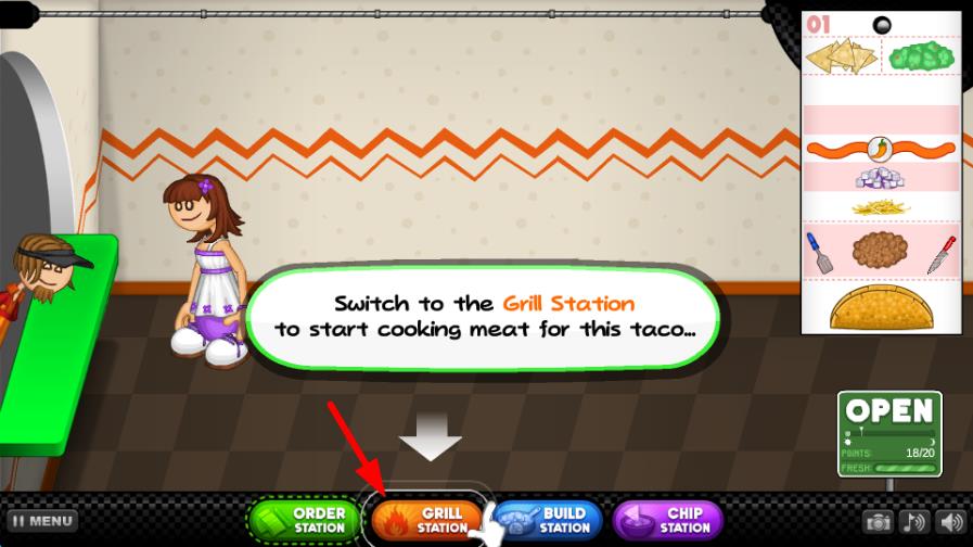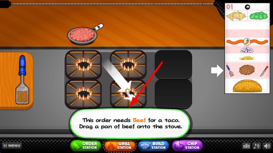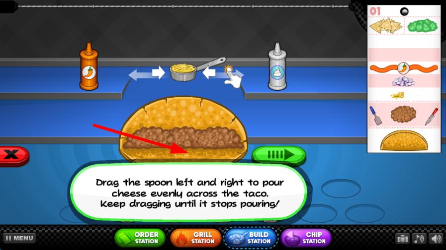 1、进入游戏后,熟悉操作台的各个区域,根据首位客人的订单,选取玉米饼、肉类等基础食材,按步骤制作简单的塔可,完成后交给客人获得第一笔收入。