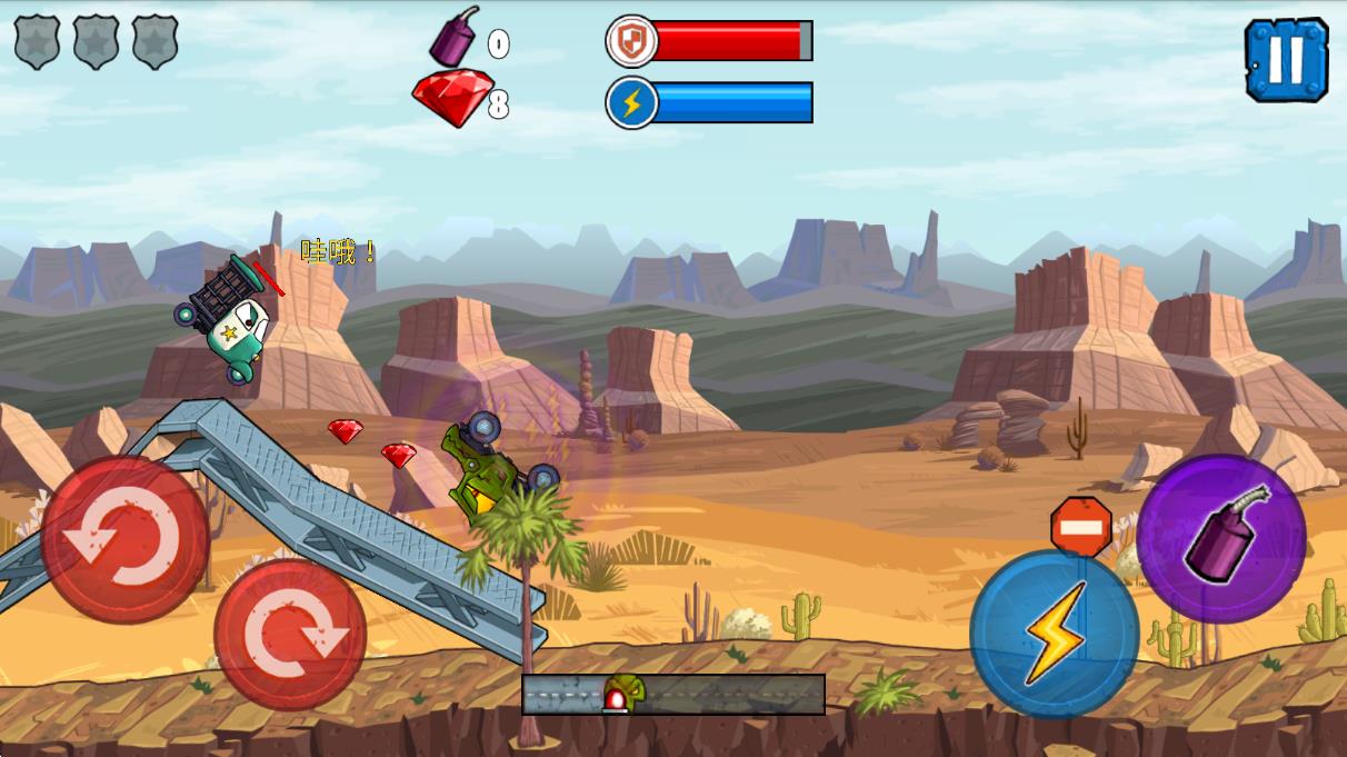 3、卡通清新画风:采用卡通的画风,车辆带有丰富表情,画面清新可爱脱俗,搭配悦耳背景音乐,营造轻松愉快的游戏氛围。