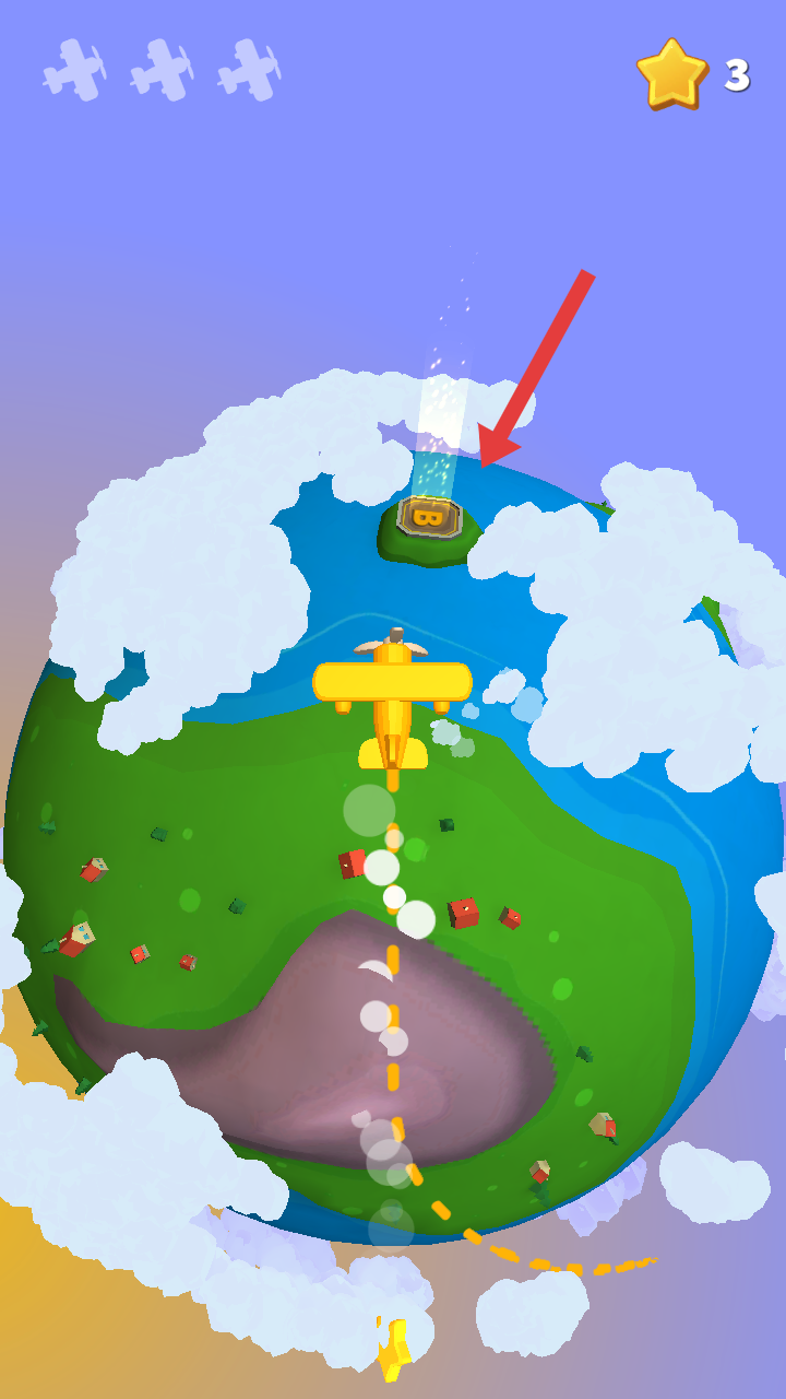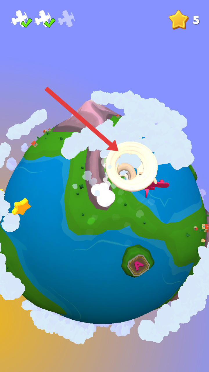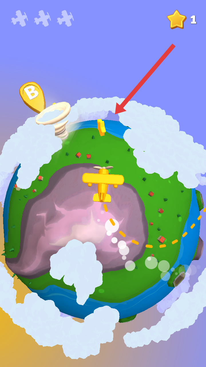 3、驾驶飞机小心不要靠近箭头指向的白色龙卷风,靠的太近飞机就被卷入其中,需要重新开始。