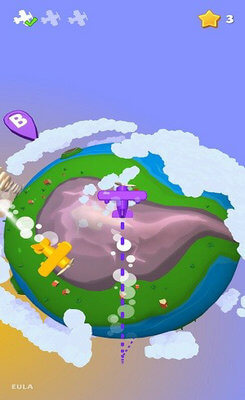 1、操控黄色飞机沿着轨迹飞行,向着云层的区域前进,尝试收集云层附近所有的黄色星星。