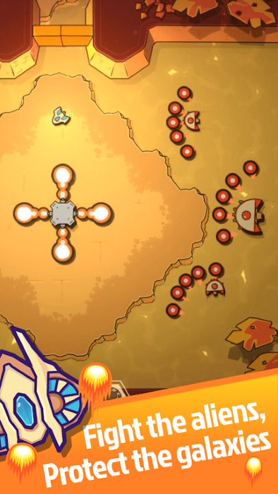 1、驾驶飞船展开冒险:用户需要精准操控飞船在地下城与太空等不同场景中自由穿梭,在躲避敌人射出的子弹的同时,瞄准对手发起猛烈攻击,在快速移动。