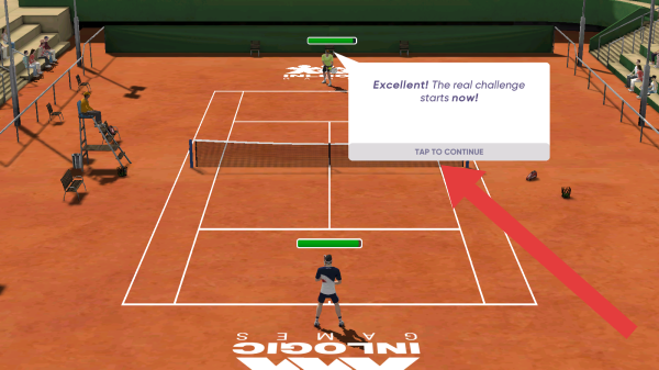 1、玩法一开始就是网球的教程,上划屏幕在找到对面落点的位置,其实有点不好操作的,需要小心操作。