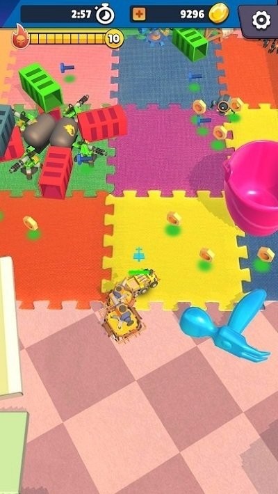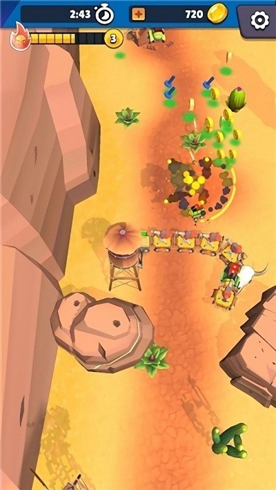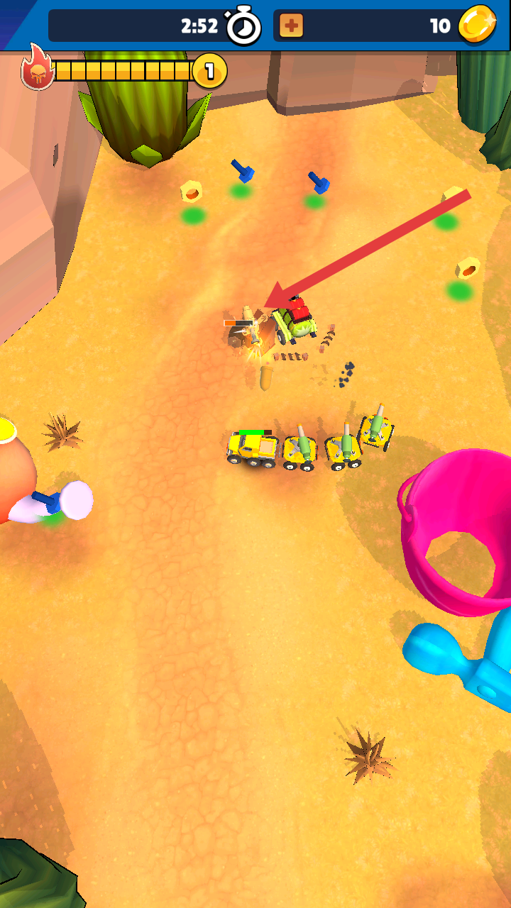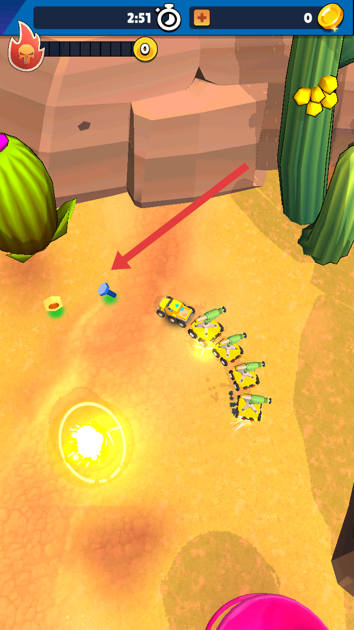 1、进入沙漠关卡后,指挥黄色战车编队移动,优先拾取零件,加长战车队伍提升战斗能力。