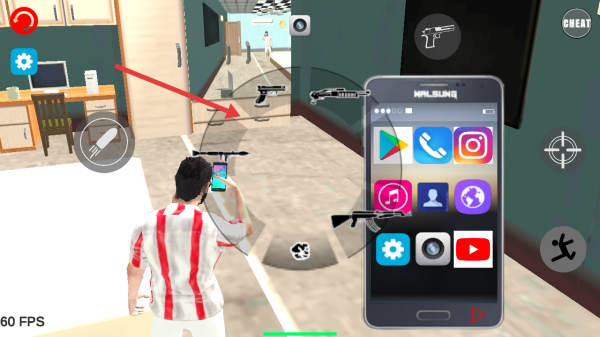 2、进入走廊触发手机交互,弹出武器选择栏,点击箭头指向的手枪完成武装,借手机功能与武器,应对前路状况。