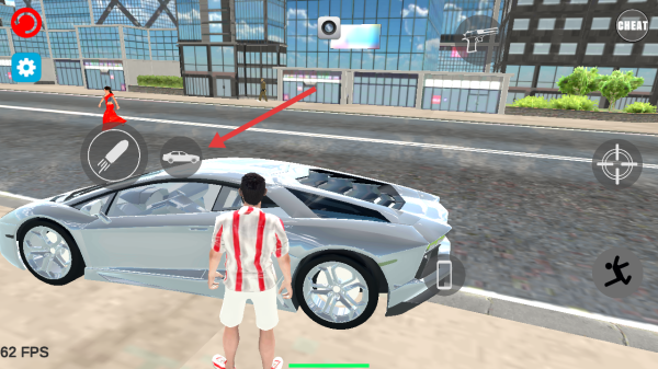 3、抵达城市街道,点击箭头所指车辆图标,驾驶跑车移动,利用车辆拓展行动范围,推进街道区域任务或探索。