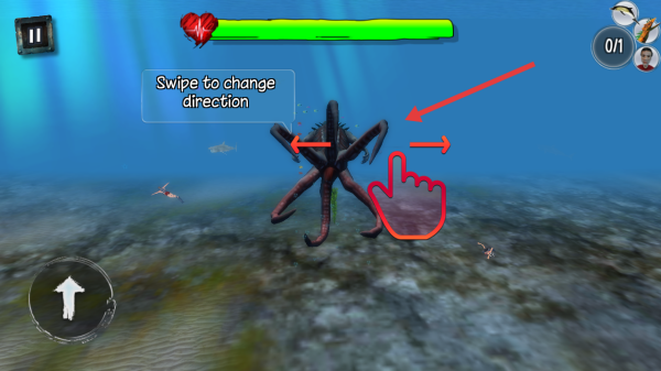 3、游戏内遇海怪时,按提示swipe to change direction滑动屏幕调整海怪移动方向,借操作躲避/攻击。