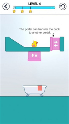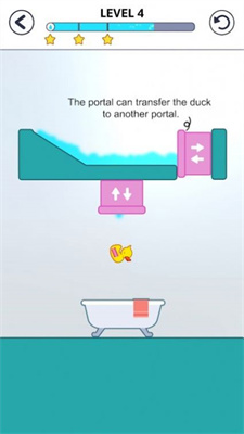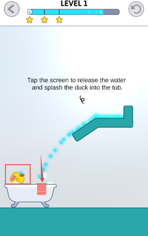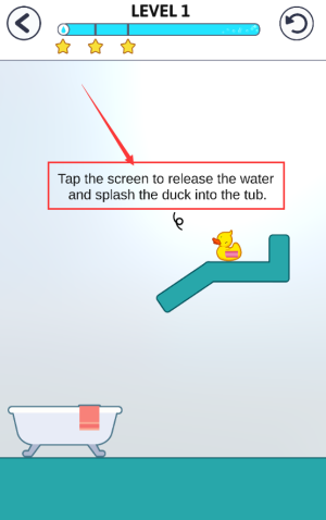 2、点击屏幕释放水流,将鸭子冲进浴缸完成目标。