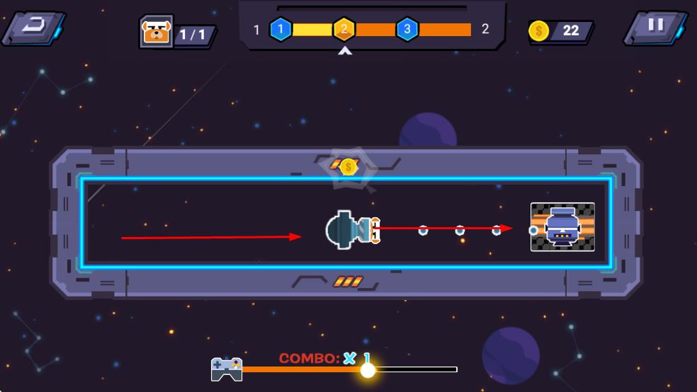 1、操控角色在太空场景中移动,躲避障碍并收集金币,开启冒险进程。