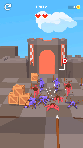 2、精准把控推进战斗进程:根据敌人的位置、盔甲与状态选择合适武器,专注控制抛掷角度,利用物理玩法让攻击精准命中,逐步消灭敌人,积累战斗经验。