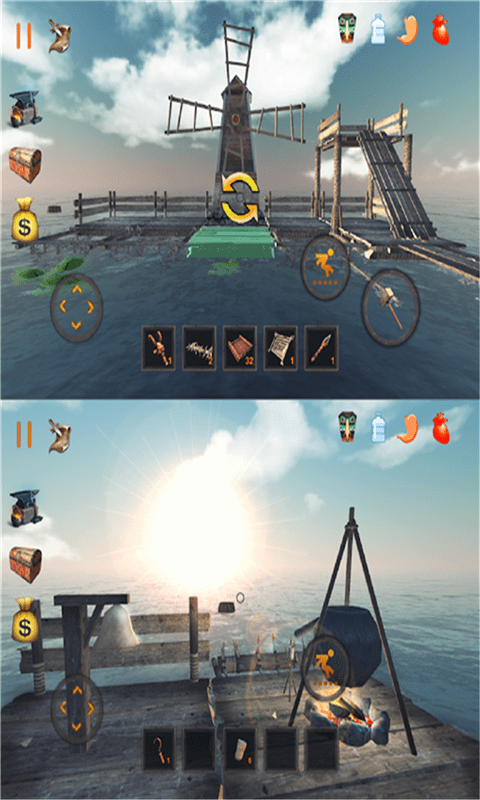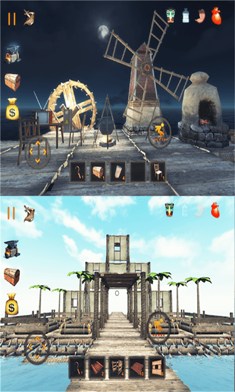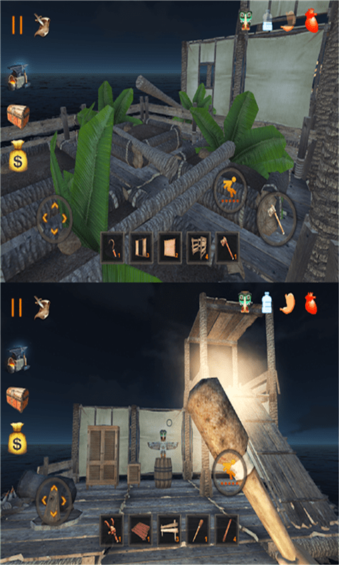 1、资源收集维生:在荒岛各处搜寻食物、药品等生存必需品,确保自身健康生命值,同时收集可利用的材料,为后续建造与防御做准备。