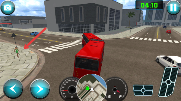 1、进入游戏后,需要操控公交车驶向系统指示的停车区域,在驾驶途中需要小心避让其他的车辆和行人。