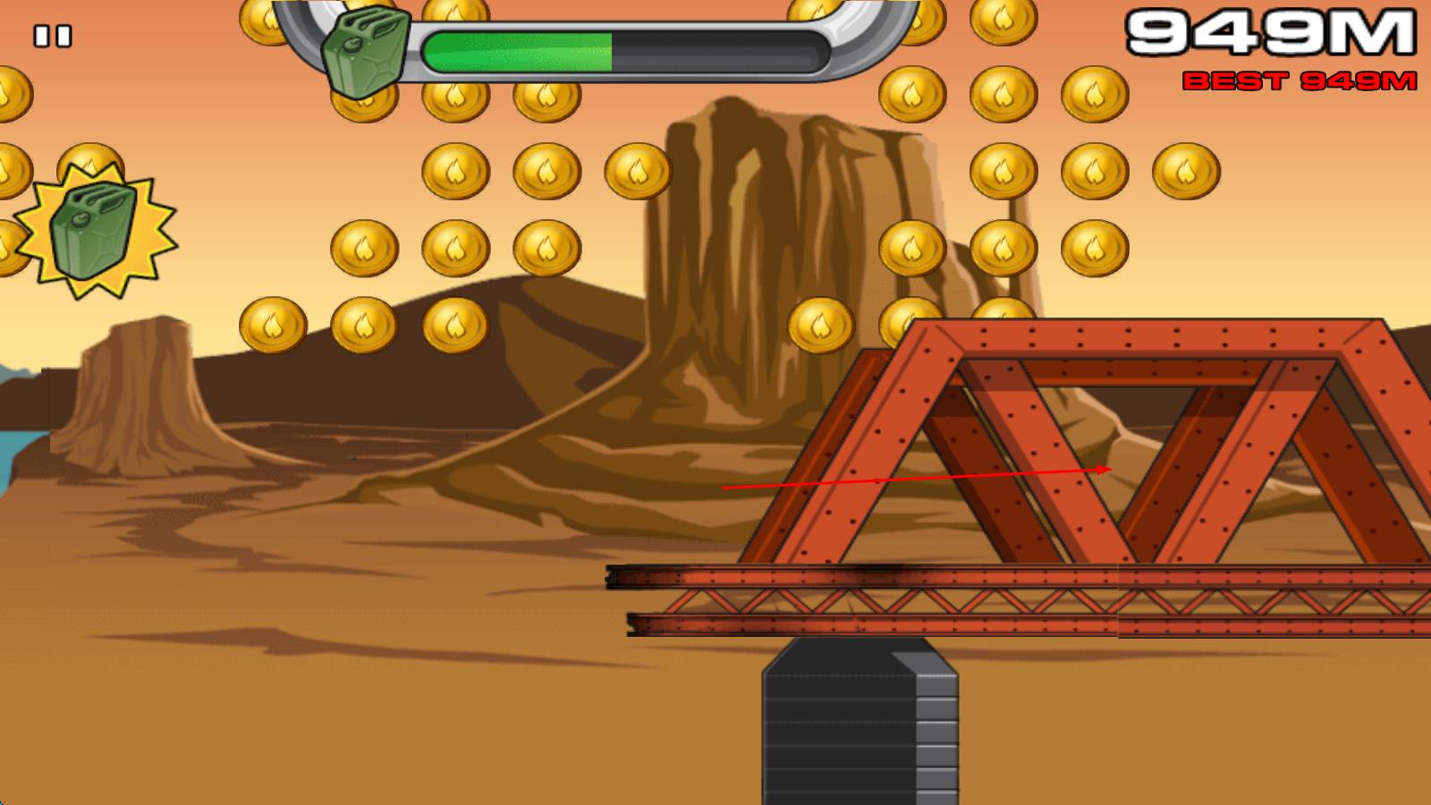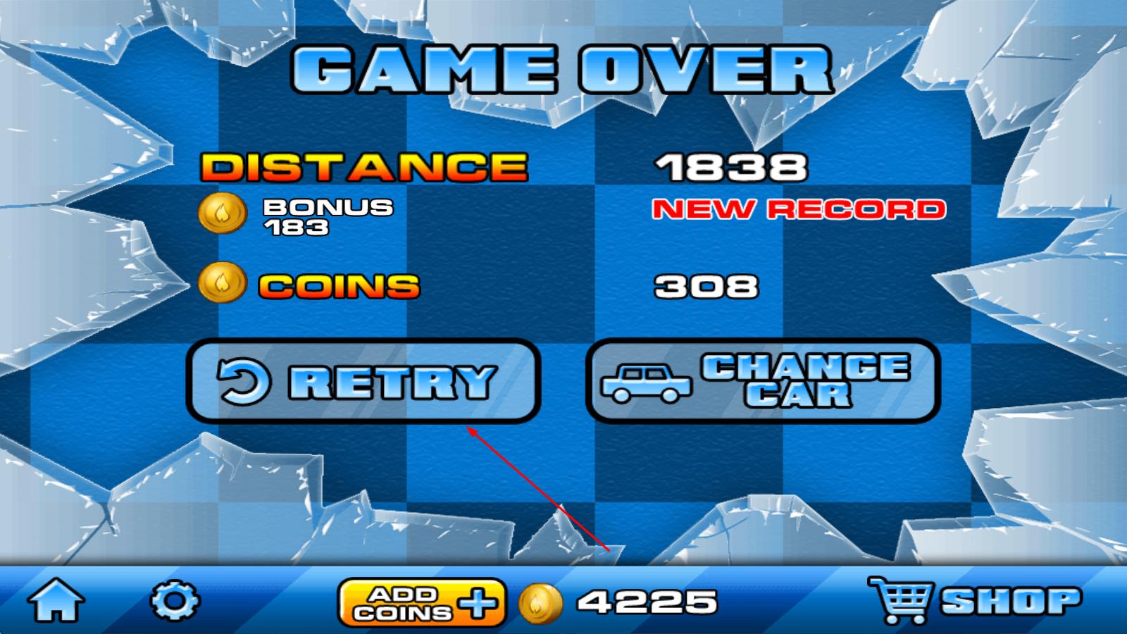 2、游戏中途,注意控制车体姿势保持平稳,收集路上的金币,遇到血迹时划屏启动雨刷清理,持续撞击僵尸推进关卡。